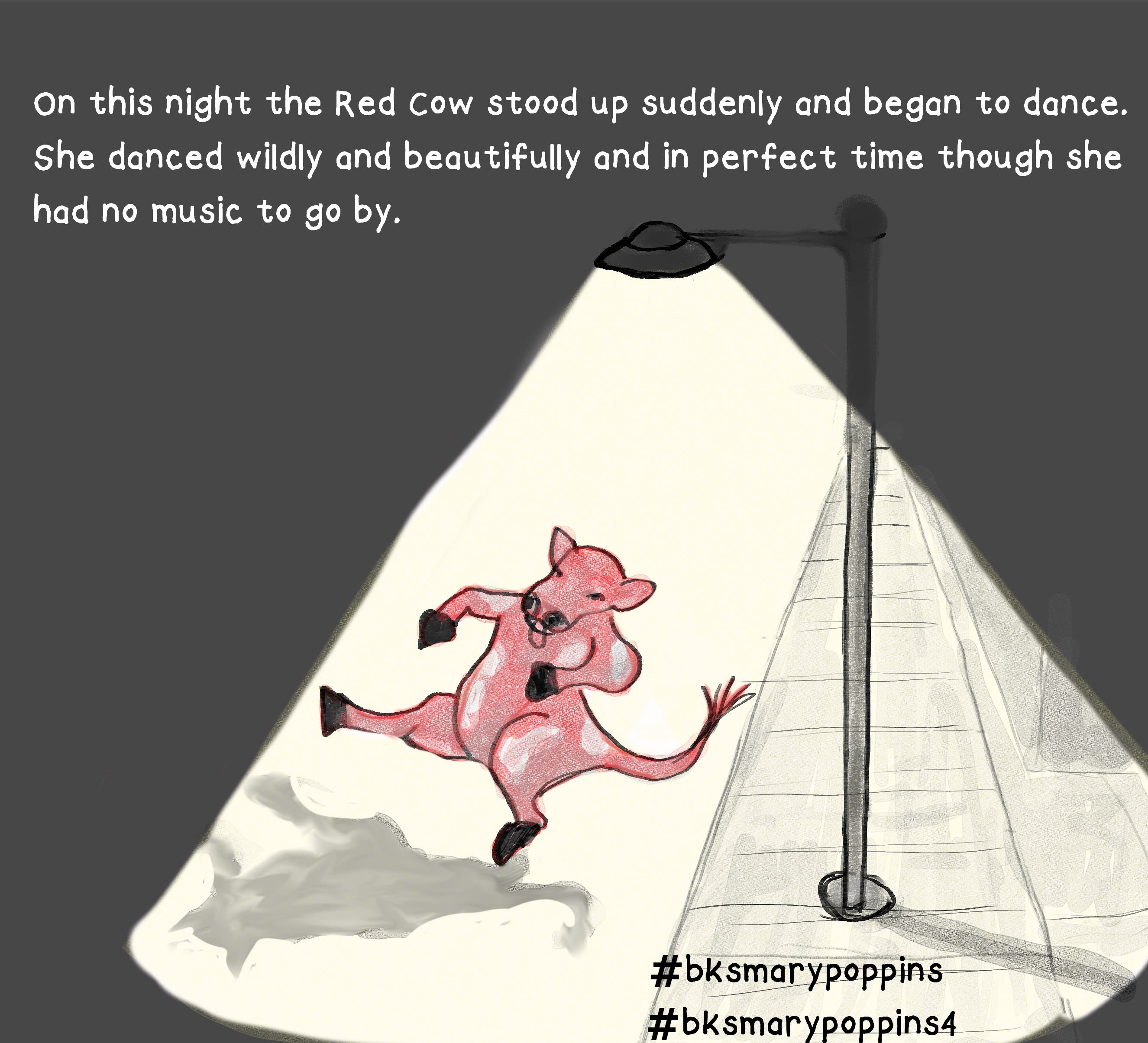 There you have it! The seven pieces for Mary Poppins. The one I like the best is the Day Six bears at night at the zoo. The struggle bus piece for this challenge was the Day Two merry-go-round piece, and trying to create a surreal environment while keeping Mary and Bert grounded in their reality. The night scene of Day Five was the happy accident piece of the series when my experimentation, when I was struggling, worked out. The POV in the Day One illustration took some work, but it was the image that popped into my head when I read the prompt, and it wouldn’t go away when I asked it to accept something easier.